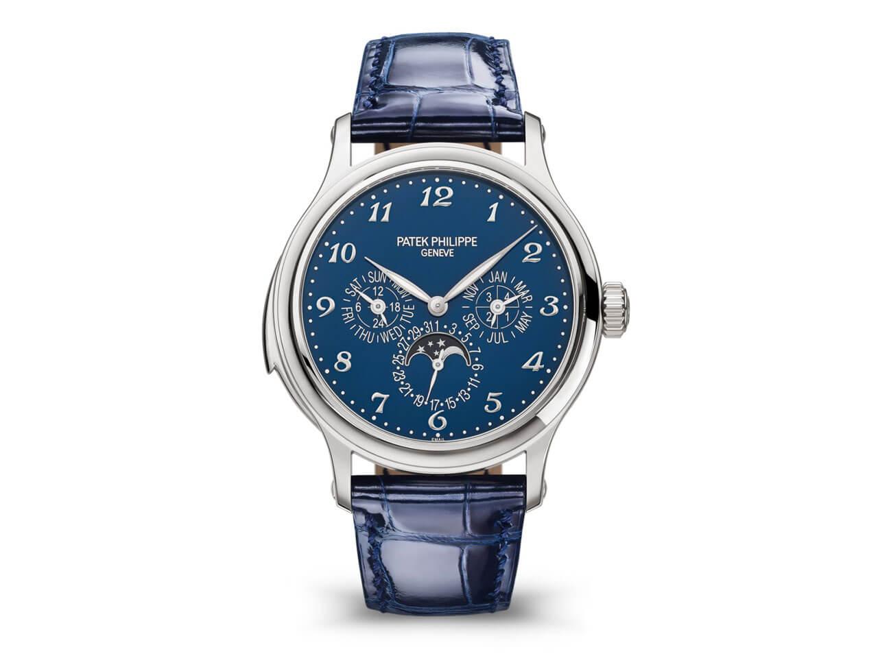 ミニット・リピーターと永久カレンダー、カセドラル・ゴングを搭載したグランド・コンプリケーション5374モデルに、光沢仕上げの本青七宝文字盤を備えた新たなホワイトゴールド・バージョンが登場! 【2021年新作】パテック・フィリップ5374G-001 ミニット・リピーター・永久カレンダーは42 mmのホワイトゴールド製ケースに自動巻ムーブメント キャリバー R 27 Qを搭載しています。