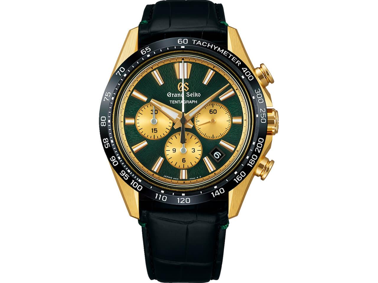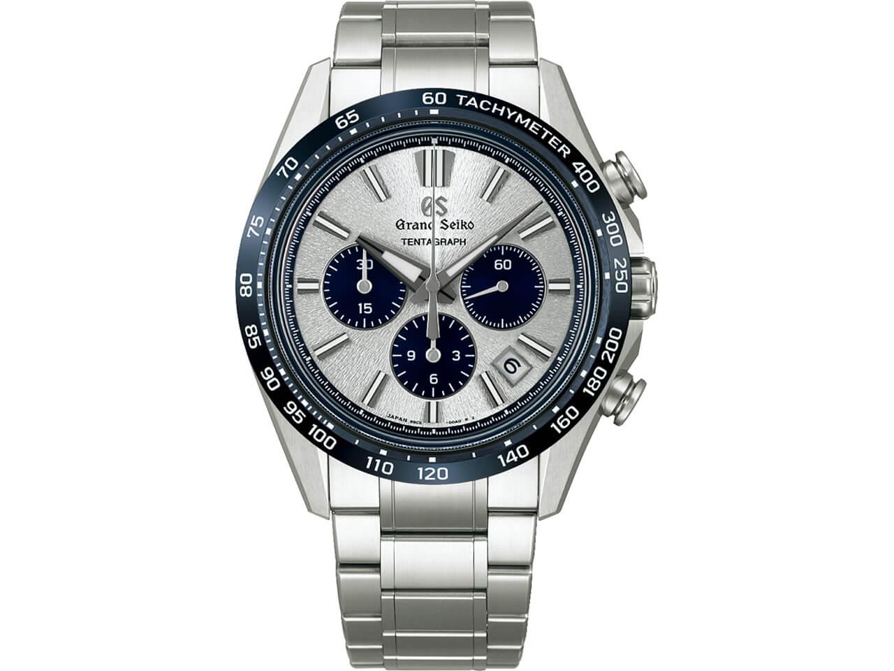 本作は2023年にグランドセイコーが発表した機械式クロノグラフキャリバー 「9SC5」、“TENTAGRAPH(テンタグラフ)”を搭載しています。「10振動」「3日間の長時間パワーリザーブ」「自動巻きクロノグラフ」の3つの機能を組み合わせた造語で72時間のパワーリザーブと日差+5秒~-3秒(静的精度)という高精度を両立しています。