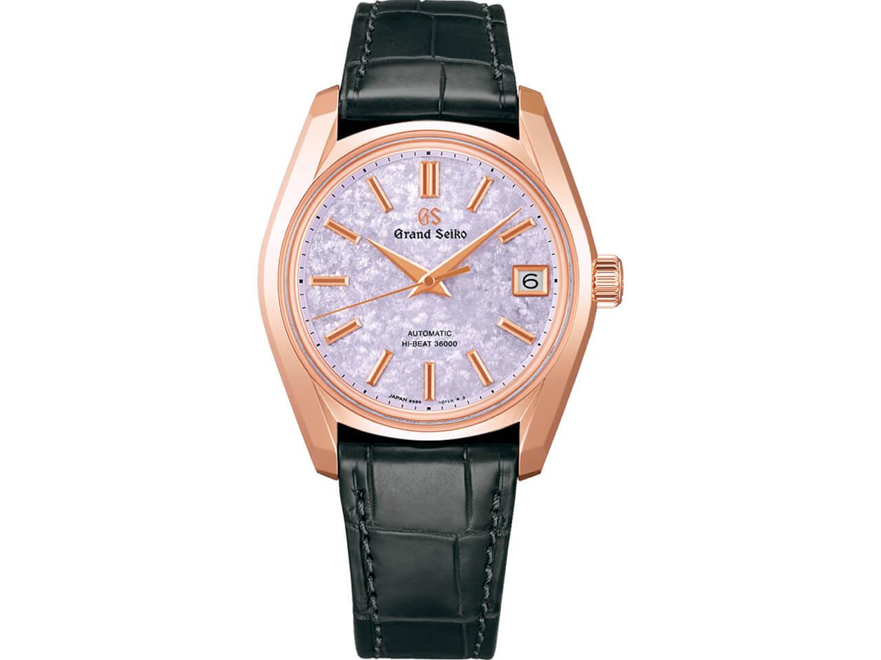 「62GS」レギュラーモデルでは初となる18Kピンクゴールドのケースを採用した、2025年新作「ヘリテージコレクション メカニカルハイビート 36000 ”桜隠し”SBGH368」と非常によく似ていますが、SBGH370は文字盤がピンクがかっているのが特徴的で、”夕桜”とニックネームがあるという情報も見かけました。これまた情緒ある響きが良いですね。