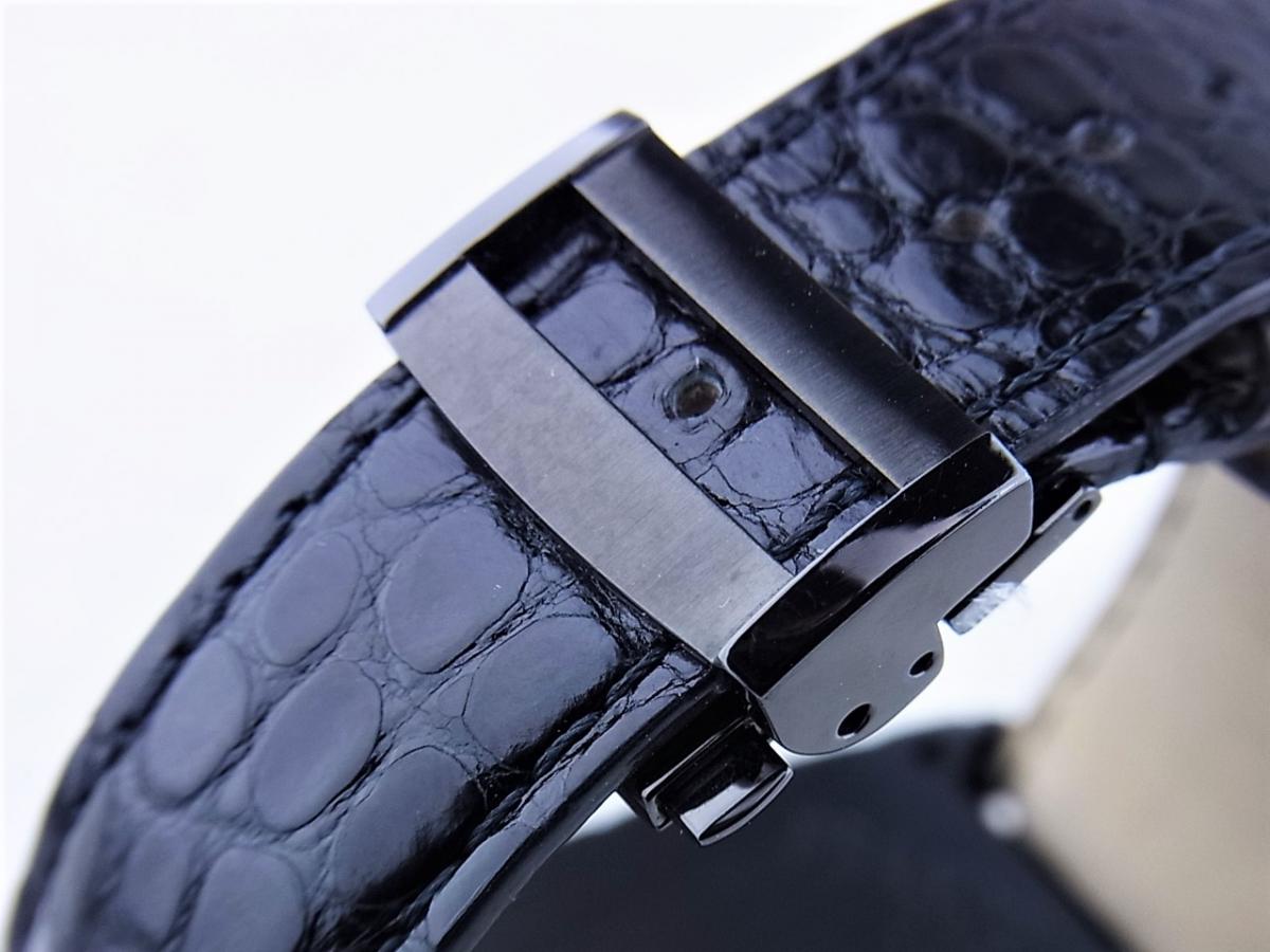 こちらの時計は、独特のクロコダイルパターンと高級感あるオールブラック仕様が特徴的な人気モデルです。